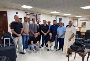 Outros manifestantes agitavam bandeiras palestinas enquanto usavam keffiyehs — lenços típicos palestinos —, entoando “Palestina livre” e demonstrando solidariedade com os palestinos mortos na guerra de Israel em Gaza.