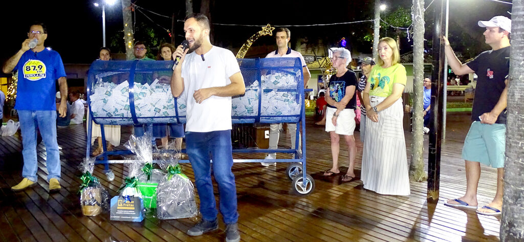Clientes que realizaram compras nos comércios de Fartura participantes da Associação Comercial e Industrial de Fartura (Acif) e preencheram os cupons concorreram, na noite de segunda-feira (29), ao sorteio da promoção Natal Premiado 2025. A ação distribuiu vales-compras de diversos valores, totalizando mais de R$ 20 mil em prêmios. A Rádio Pérola FM também participou do evento.