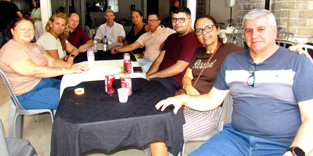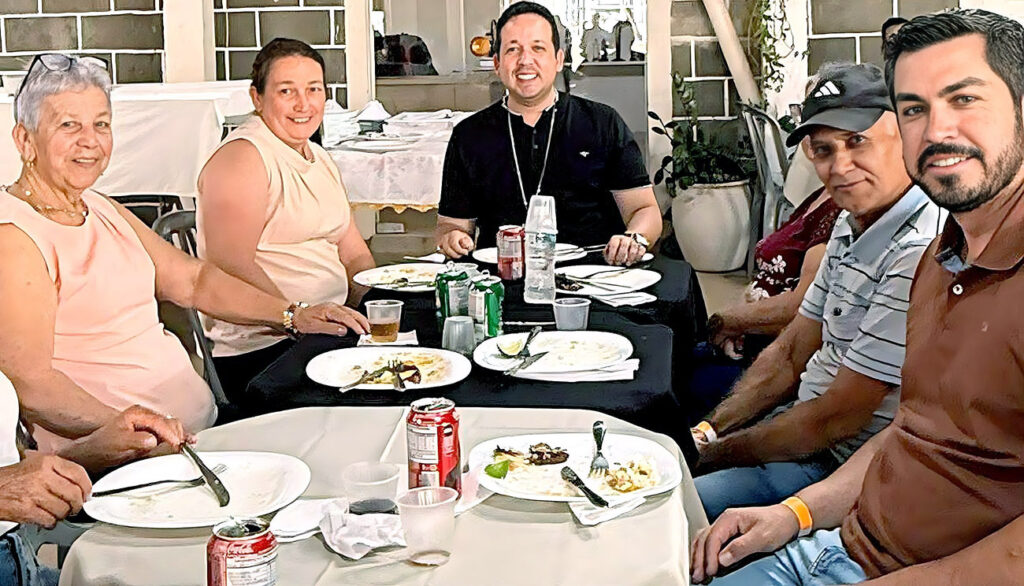 Kateto e Kátia com o filho e amigos no almoço